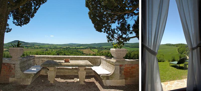 I den lilla byn Lucignano d'Asso i södra Toscana, en halvtimme utanför Siena, ligger denna country residence. De bleka tonerna av ockra, rosa och beige från de uråldriga byggnaderna smälter perfekt in i den gröna paletten från de omgivande Crete Senesi.